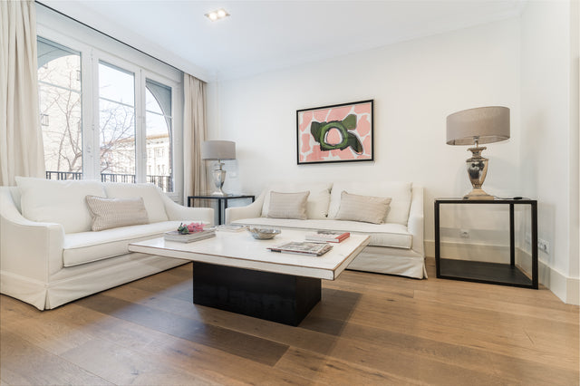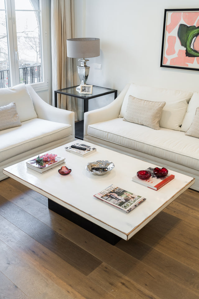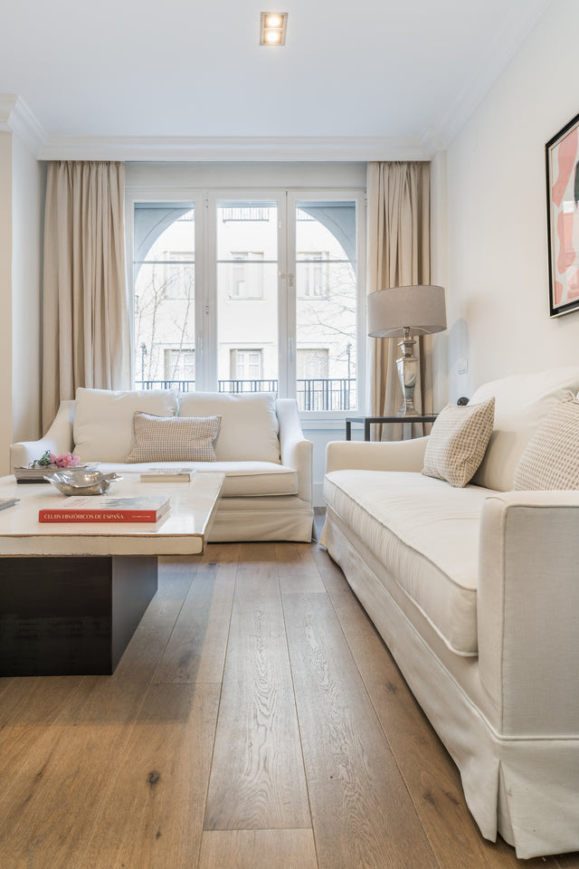 Nos encontramos en un piso en el barrio de Salamanca de Madrid, con techos altos y una maravillosa luz natural que inundan esta vivienda, la cual decoramos con mucho cariño para nuestros clientes.