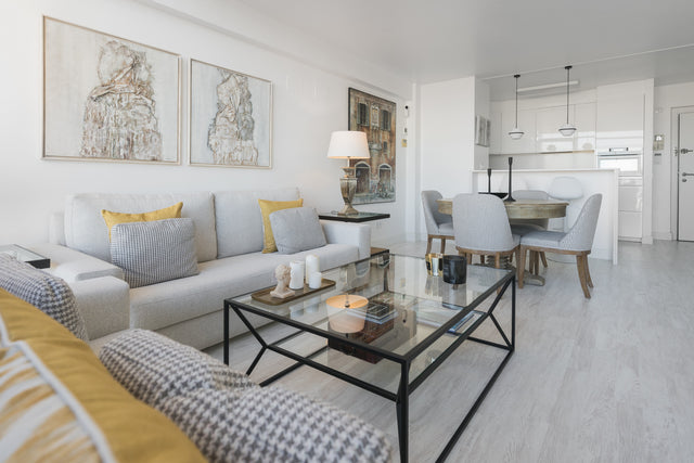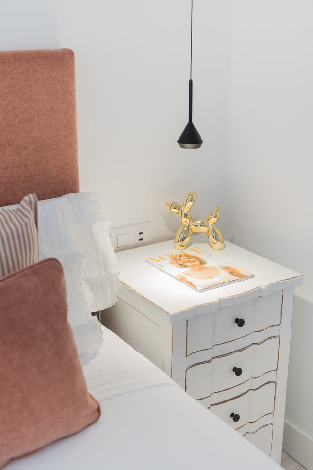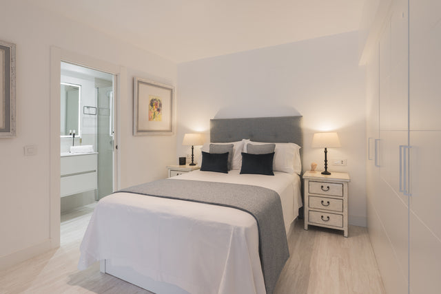 Una de las premisas fundamentales de nuestra clienta era lograr un espacio funcional y luminoso. Este apartamento, concebido como una solución temporal después de vender su casa en Madrid, buscaba proporcionar comodidad tanto para estancias cortas como de hasta un mes.