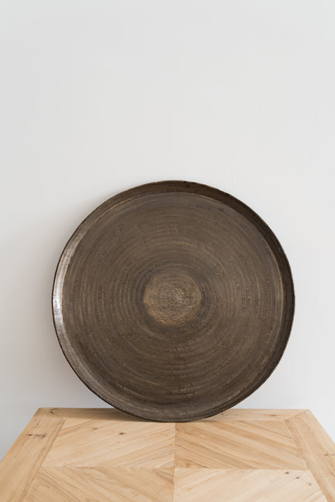 Bandeja decorativa de metal envejecido con acabado artesanal