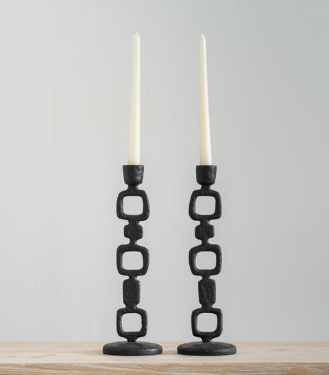 El candelabro Kenia con su diseño atemporal y forma escultórica realzará la decoración de tu hogar. Acabado en color negro, metálico y texturado es perfecto.