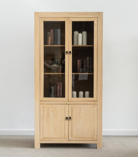 Esta vitrina realizada en madera de olmo de nuestra colección Ginebra, llevará la naturaleza directa a tu salón.